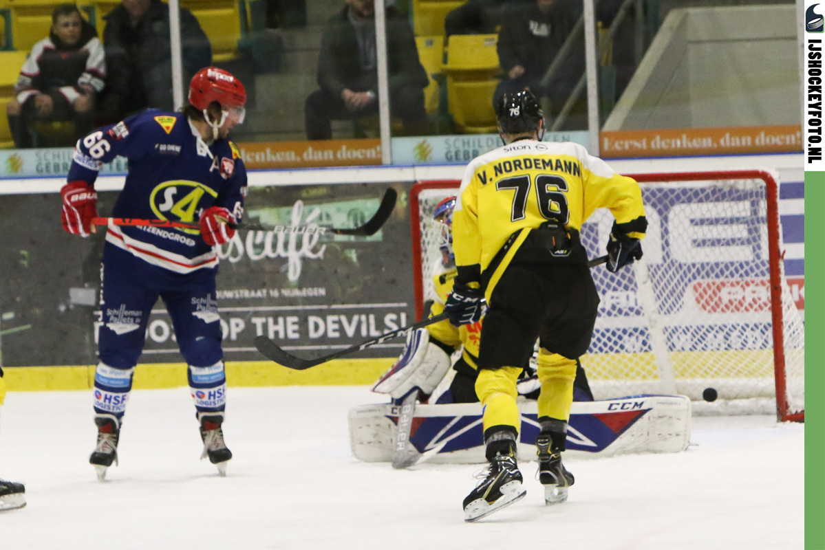Fotograaf Paul Nicolaassen van IJshockeyfoto.nl maakte onderstaande fotoreportage over het duel van Devils tegen Flyers.