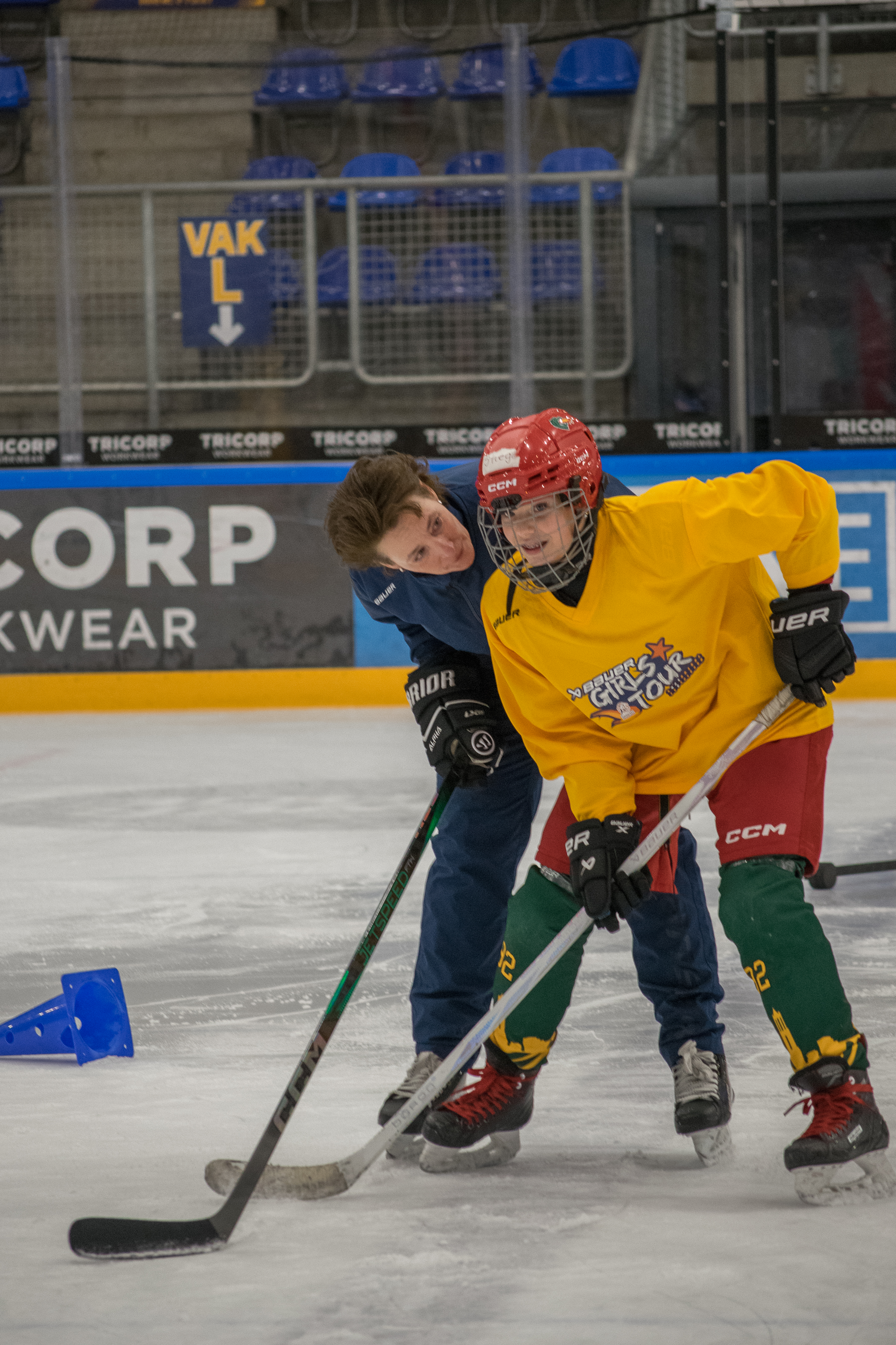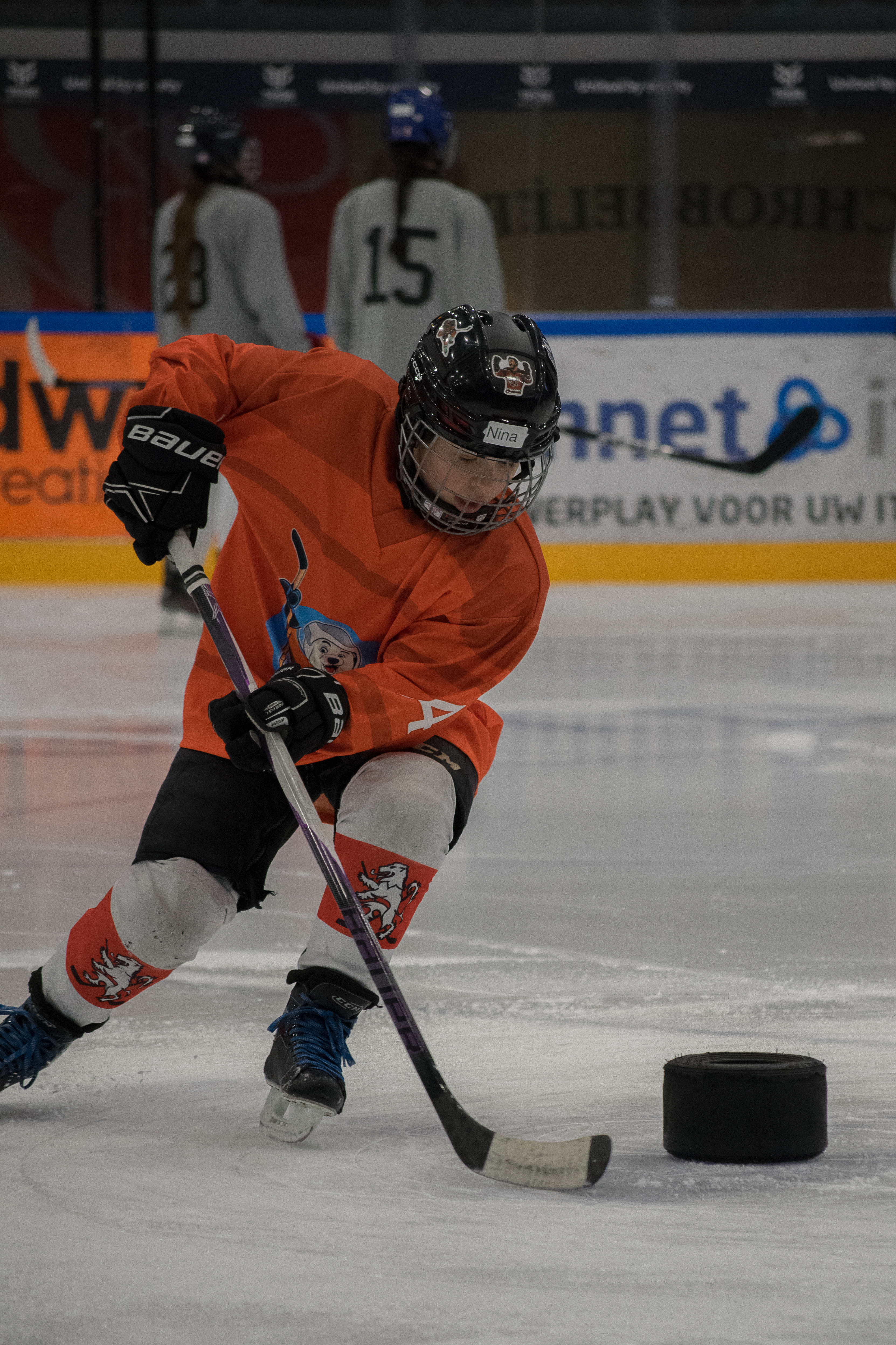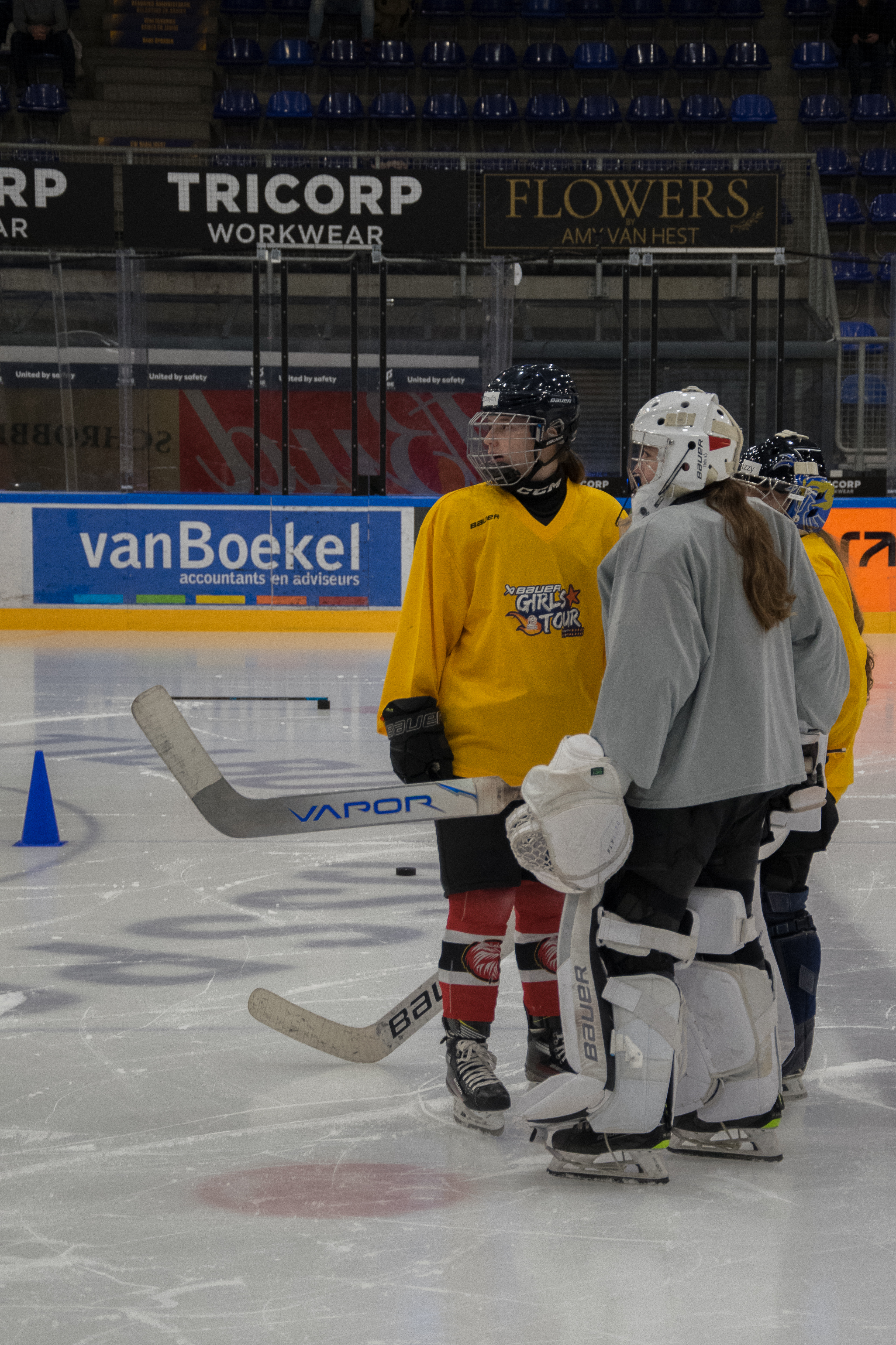De ijstraining richtte zich op verschillende aspecten van het ijshockey, zoals schaatstechniek, puckcontrole, en schieten. De meiden waren enthousiast en leergierig, en het was duidelijk dat ze veel opstaken van de ervaren coaches en speelsters.