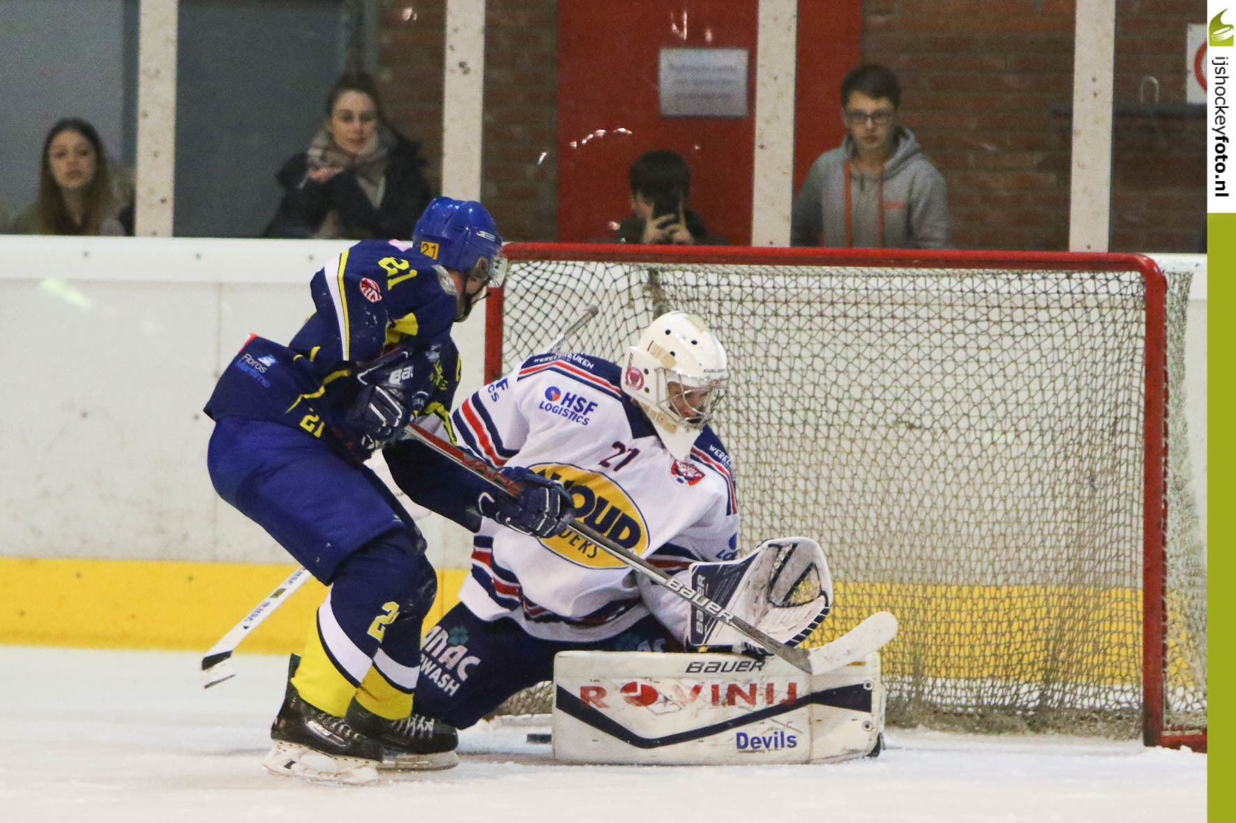 Nu is het tijd om te stoppen. De Herdt: ‘Ik kan het ijshockey als speler niet meer combineren met mijn baan en mijn gezin. Ik ga nu verder als referee omdat ik dat nog wel kan combineren. Vorige week heb ik mijn eerste wedstrijd gefloten en dat beviel goed.’